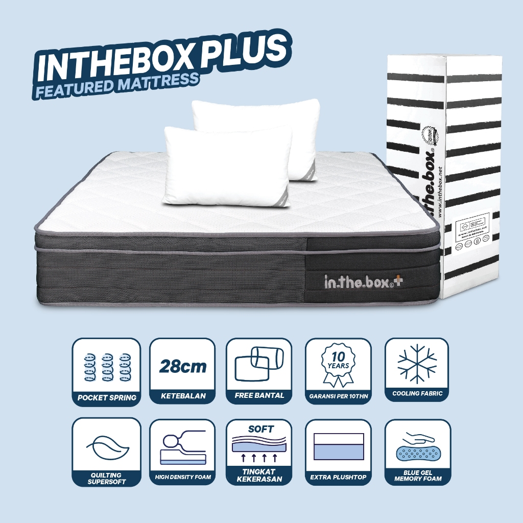 Kasur Spring Bed Berkualitas IN THE BOX PLUS (Plush Top) - FREE Bantal | Ukuran Kasur 90x200, 100x200, 120x200, 140x200,