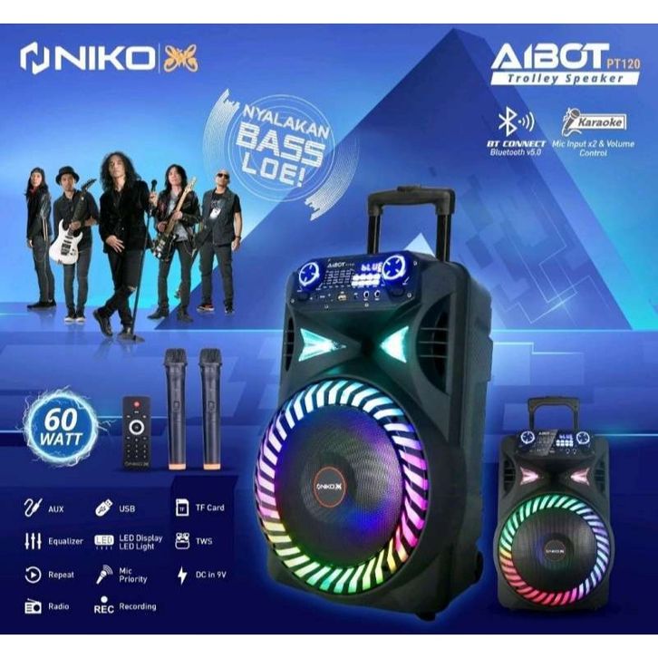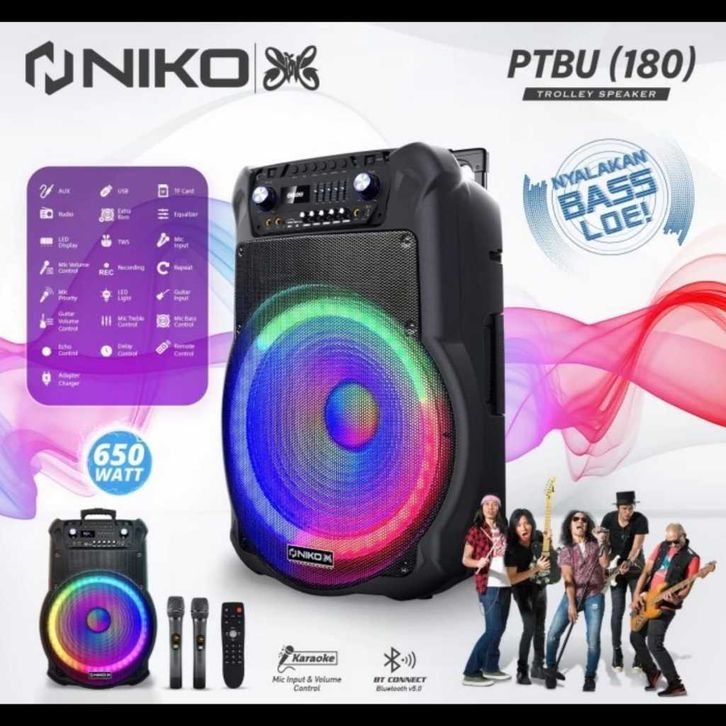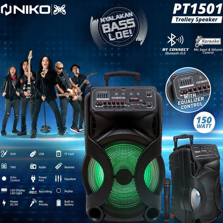 SPEAKER PORTABLE BLUETOOTH 18 INCHI - 15 INCH - 12 INCHI NIKO SPEAKER TROLLY PT 1501 / PT 1502 / PT 1503 / PTBU