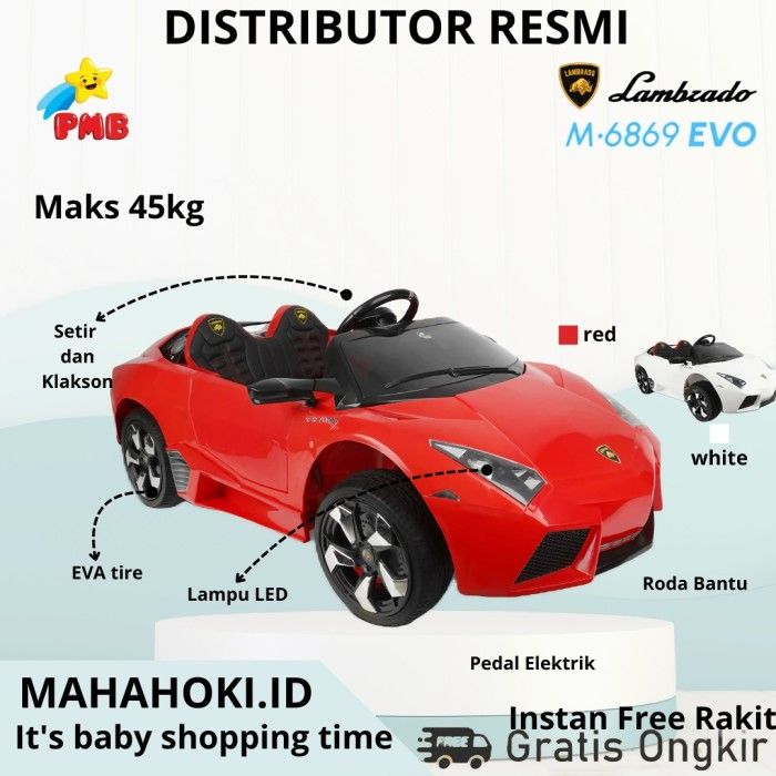 MOBILAN MAINAN AKI ANAK PMB M-6869 LAMBRADO LAMBORGHINI REMOTE CONTROL