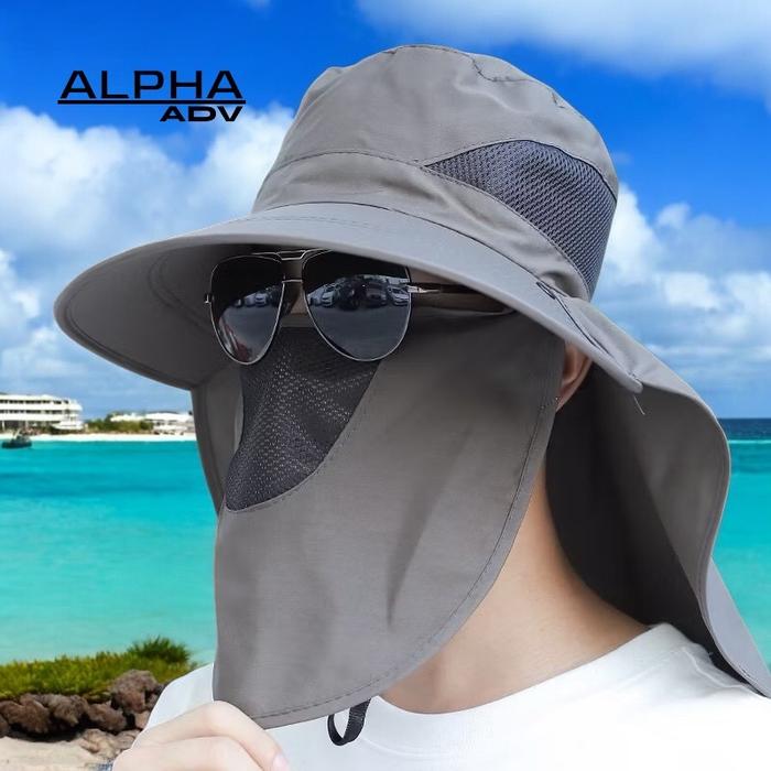 ALPHA ADV Topi Mancing Model Tentara Jepang Dengan Masker Anti UV Rimba Outdoor Gunung