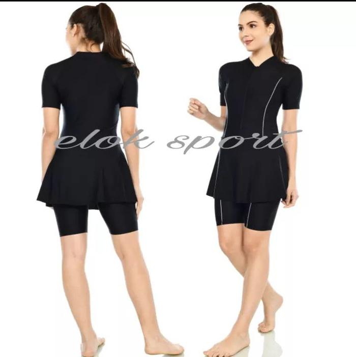 baju renang wanita cup bh DIVING ROK tangan pendek polos dewasa Outdoor Celana Sport Swimwear olahraga