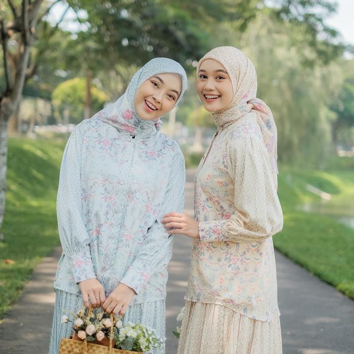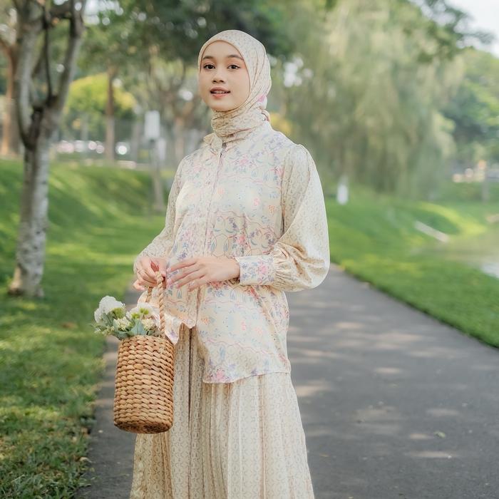 Rumibykyla - Nadeen Set 3 in 1 Atasan Rok Pleats Wanita Bahan Silk dan Hijab voal Motif