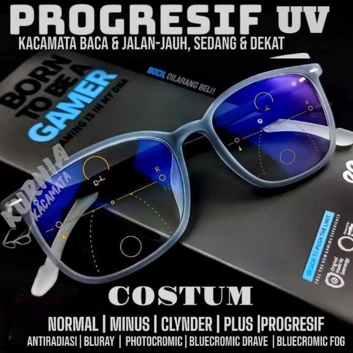 Kacamata Progresif bluecromic drive anti silau | antiradiasi | bluray | photocromic |Pria Wanita | Kacamata Plus Baca d