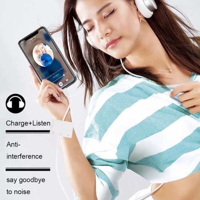 KABEL KONEKTOR IPHONE LIGHTNING ADAPTER AUX HEADSET CHARGER 3 IN 1 ORI