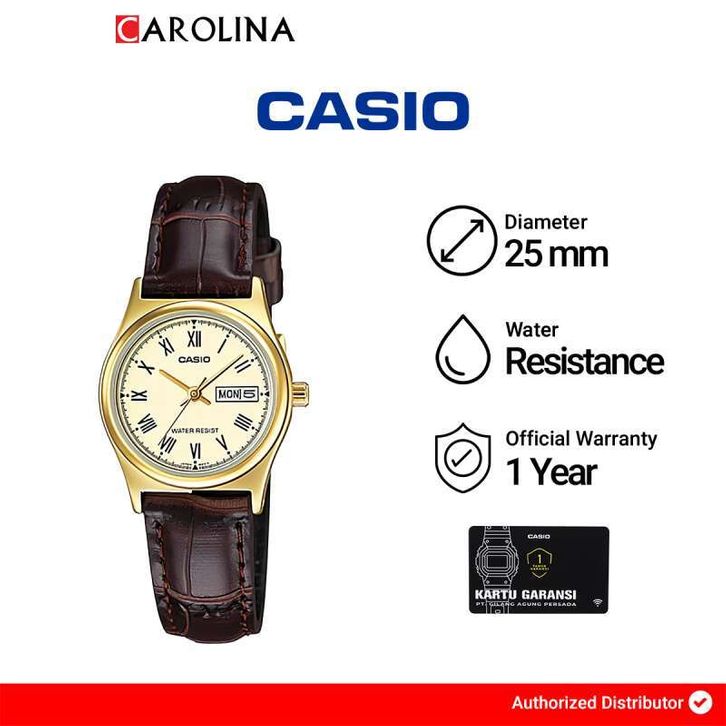 Jam Tangan Wanita Casio General LTP-V006GL-9B Gold Dial Brown Leather Band