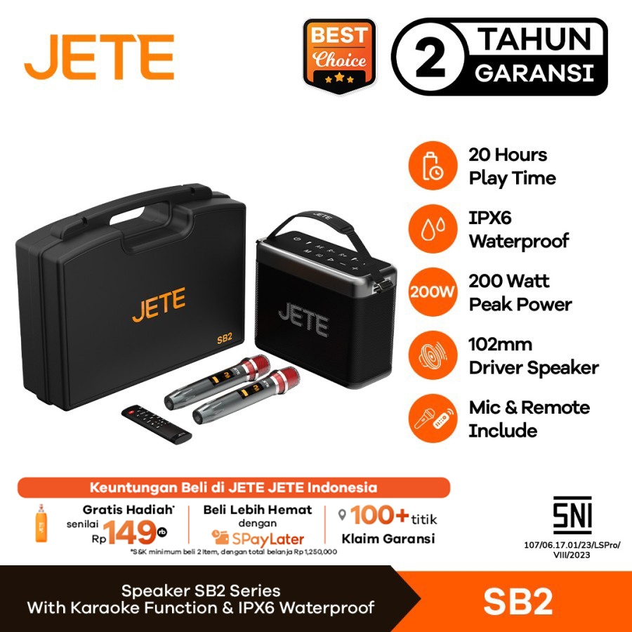 Speaker Bluetooth Karaoke 200W IPX6 JETE SB2 with Wireless Mic - Garansi 2 Tahun