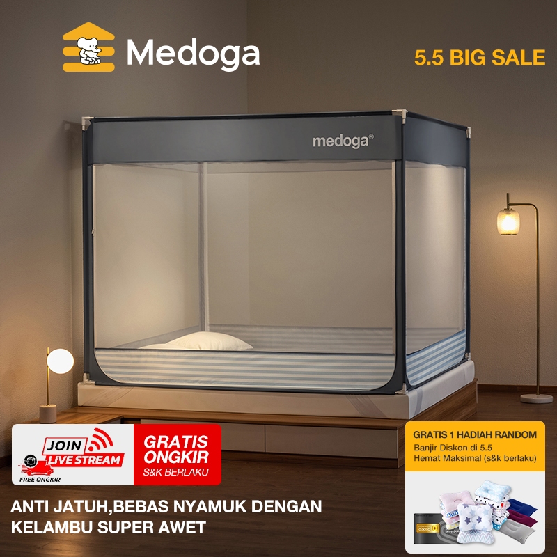 Medoga Kelambu Anti Jatuh Tenda Bayi Tidur Jaring Jumbo Anti Nyamuk Kotak 160x200 180x200 200x200