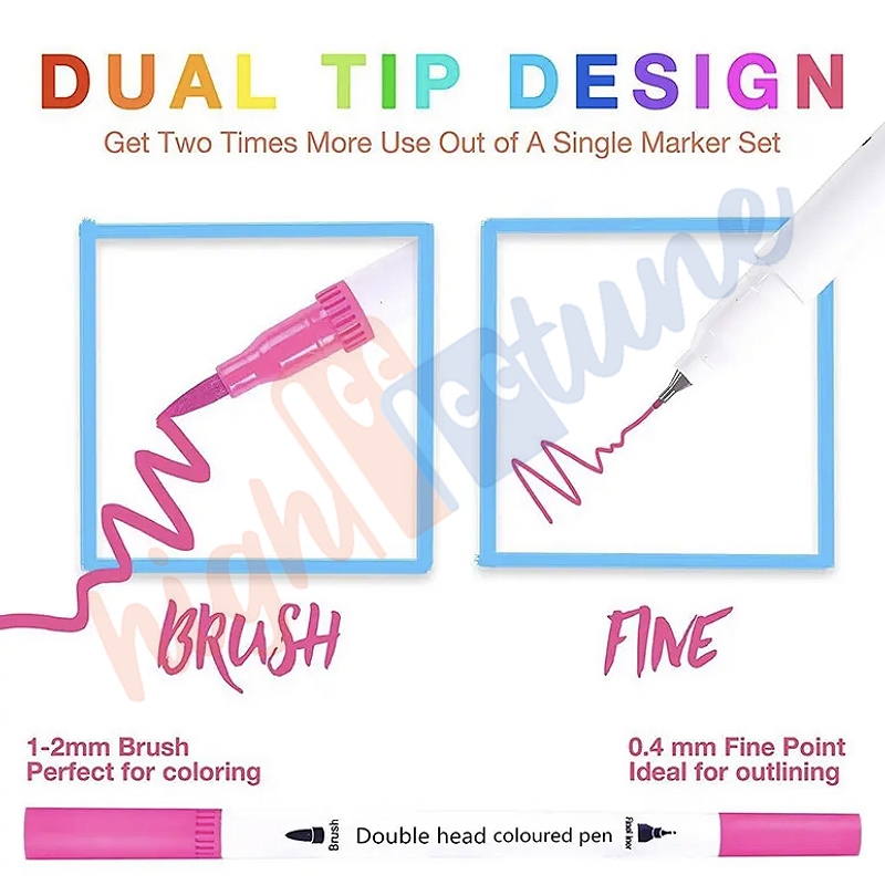 Hightune Acrylic Marker 60/80/100/120 Spidol Permanen Set Warna 2 Tip Drawing Pen DIY Alat Sekolah
