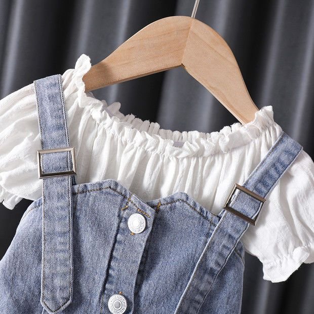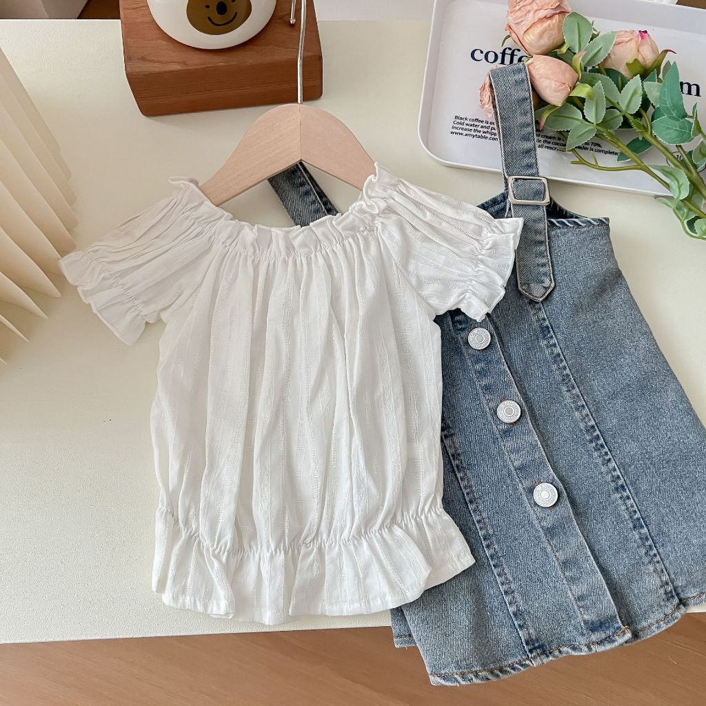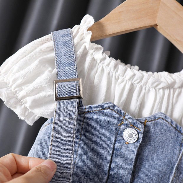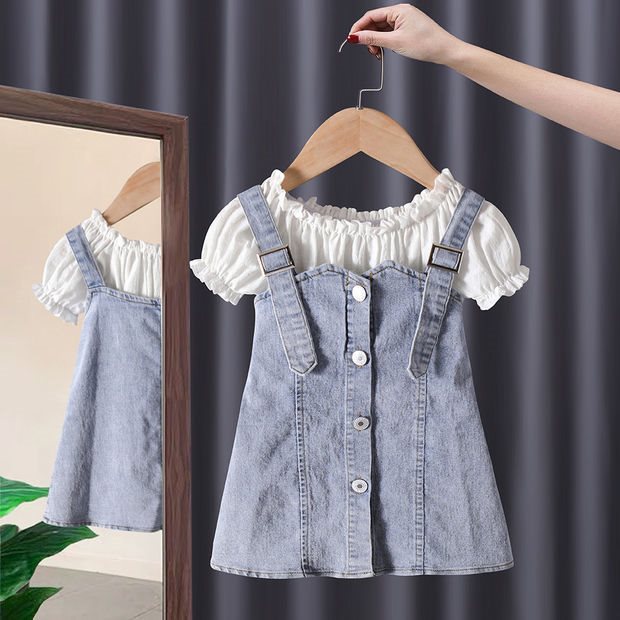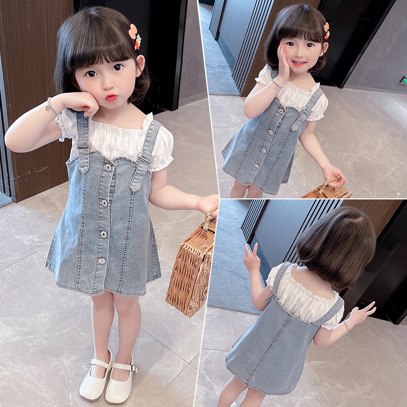 QUENZA Setelan Dress Anak Perempuan Jeans Kombinasi Rayon Crinkle Modis Korean Style Usia 1-6 Tahun