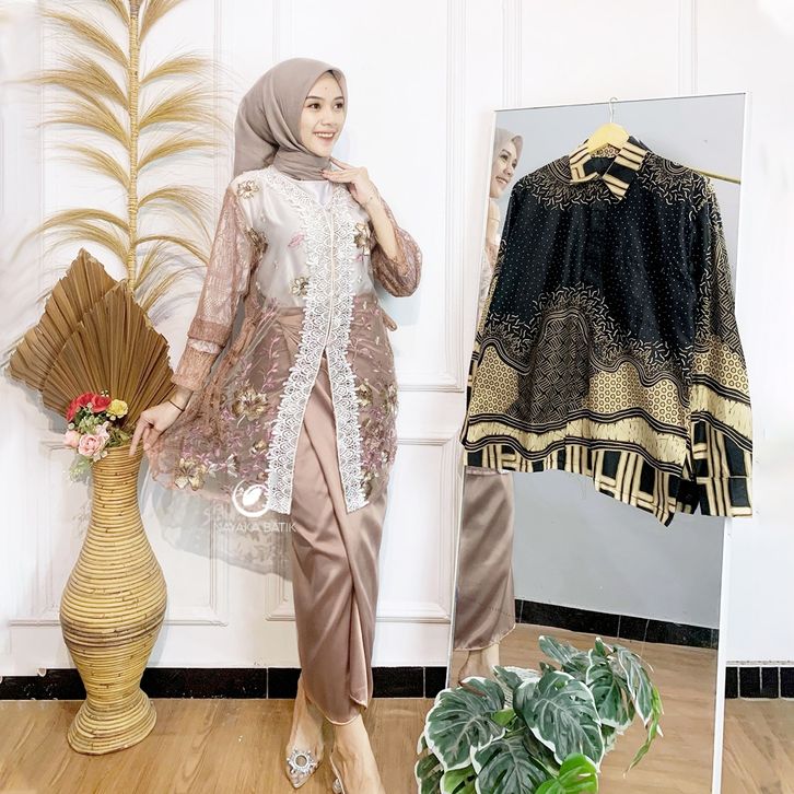 NEW ARRIVAL NAYAKA BATIK FURING SERIES - Baju Couple Pasangan Lamaran Kondangan Mewah One Set Maiza Tulle Gardenia Warn