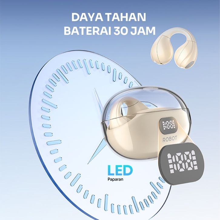 ROBOT OWS AIR 10 Headset Bluetooth 5.3 TWS Open Ear Clip Style LED Display Garansi Original Resmi