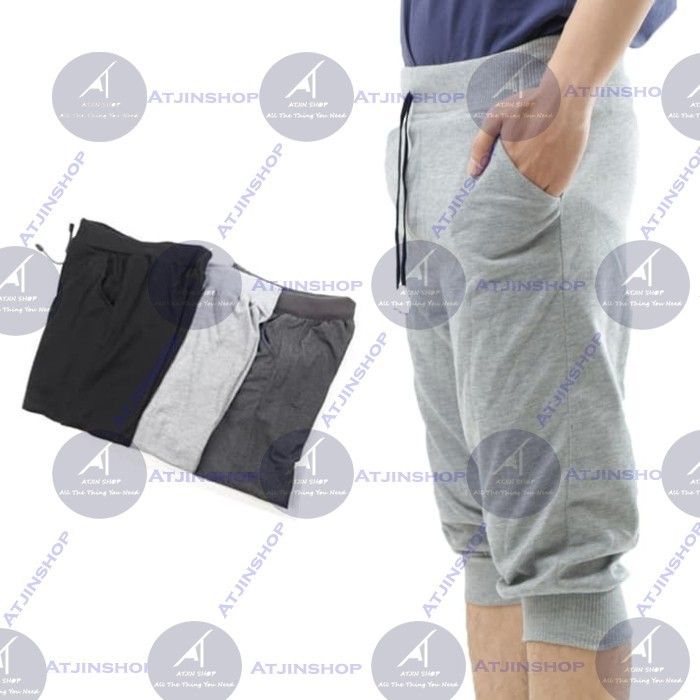Murah [6 Warna]Celana Semi Jogger Training Pria Wanita Bahan Kain Baby Terry - Hitam L|XL Promo