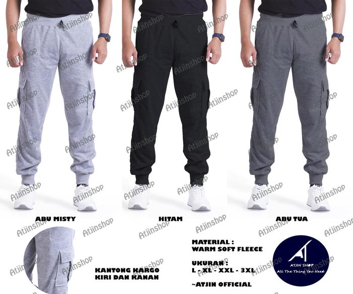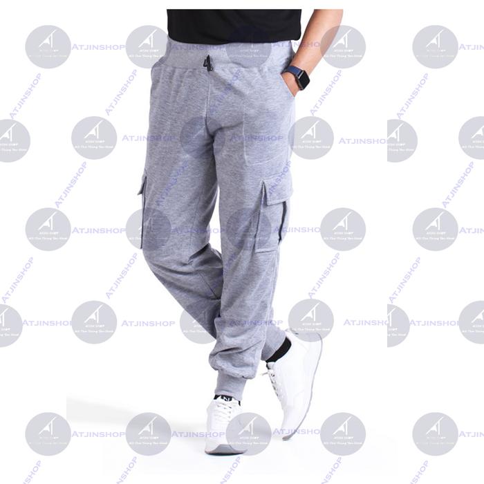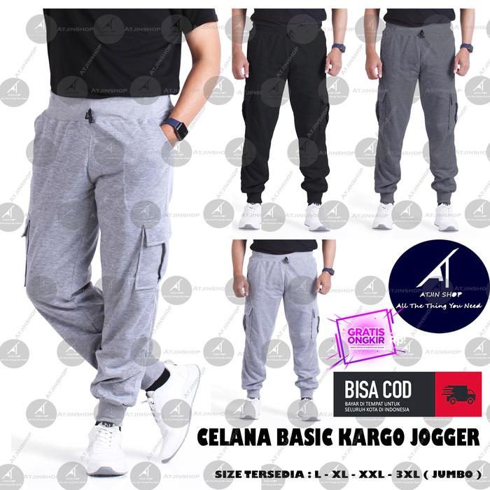 Murah Atjin -Celana Joger Jogger Pria Model Cargo Kargo Korea - Hitam L|XL ( No 28-32) Promo