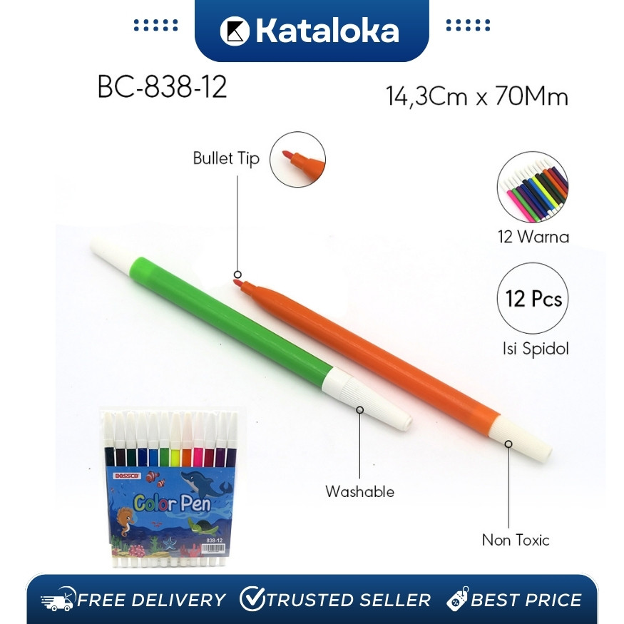 (1 GROSS) Spidol BOSSCO 12 WARNA BESAR 838/ Spidol 12 warna BOSSCO 838/ BOSSCO pw 12 warna BESAR