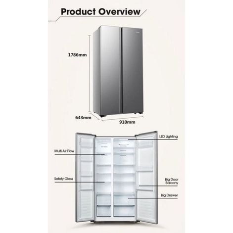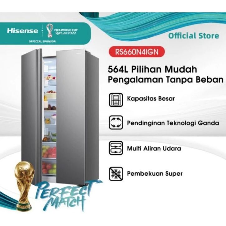 HISENSE Kulkas 2 Pintu Side by Side 564Liter RS660N4IGN Silver