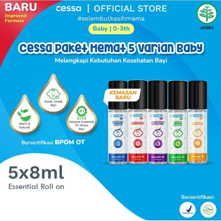 Cessa baby oil essensial oil cessa Baby 0-3 tahun Fever Drop , Cough n Flu , Lenire , Bugs Away dan Immune Booster / Her