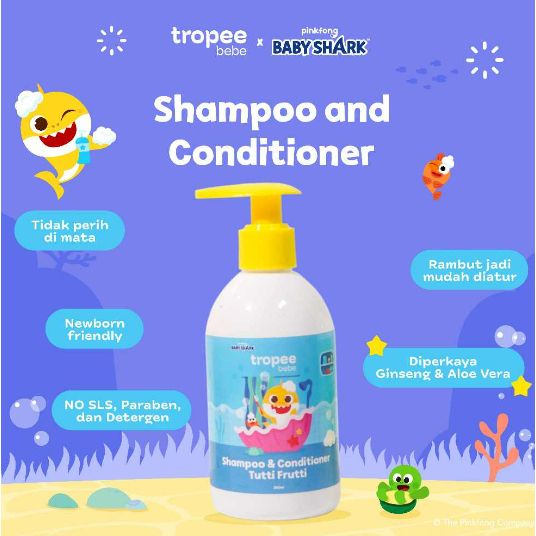 Tropee Bebe x Pinkfong - Shampo & Conditioner 250ml / Sampo Bayi dan Anak / Free SLS / Anti Lepek / MUJENI