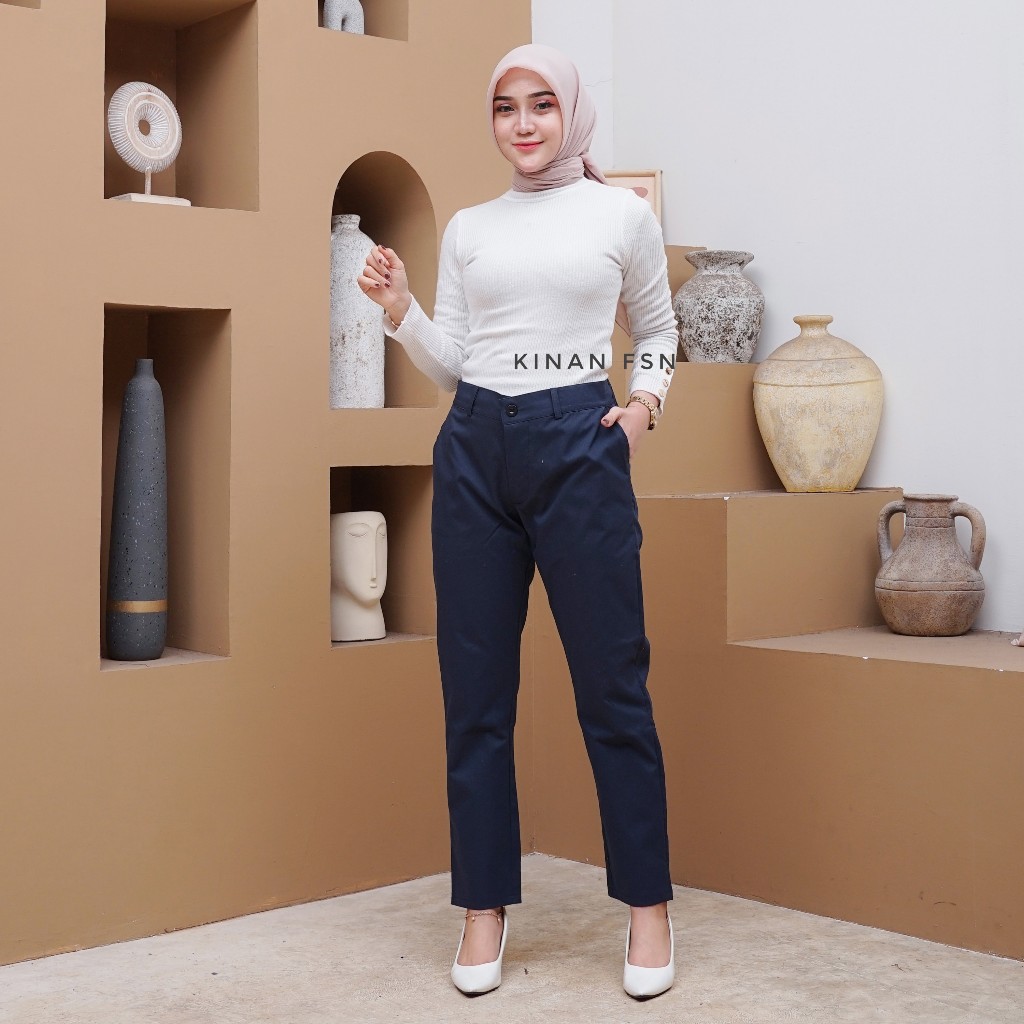 (Gratis Ongkir) Celana Basic Resleting Wanita Karet Casual Formal Kantor Bahan Katun Jumbo