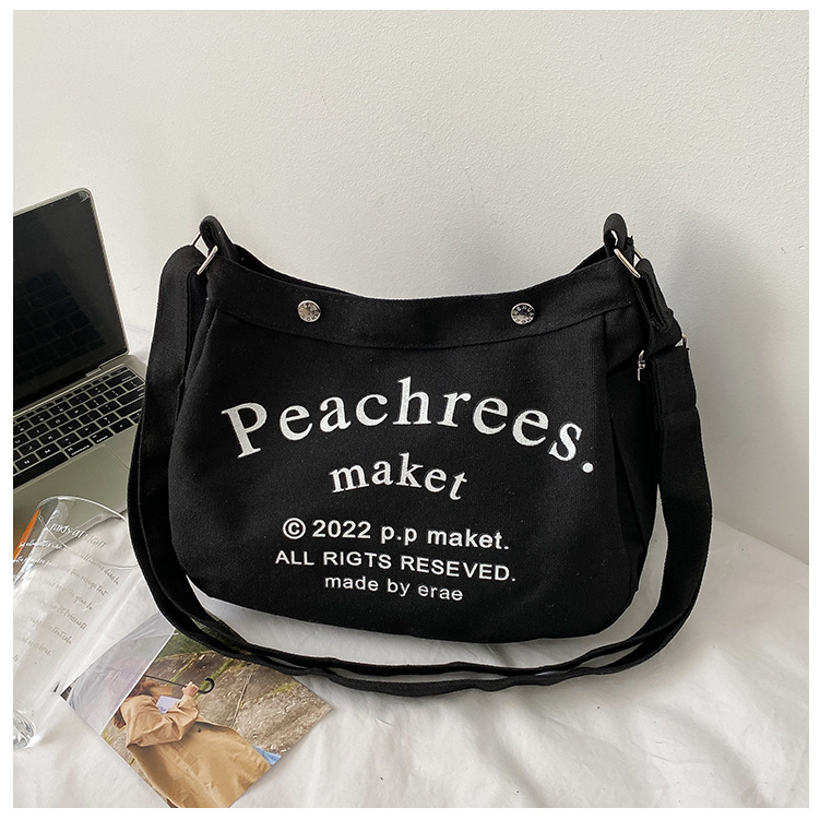 BLOSSOM Peach Shoulder Sling Bag Tas Selempang Bahu Canvas Lucu Vintage Barang Cewek Aesthetic Urban Fashion Kuliah