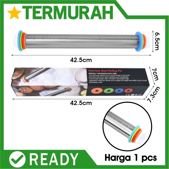 STAINLESS Adjustable Rolling Pin gilingan Penggilas Adonan penggiling