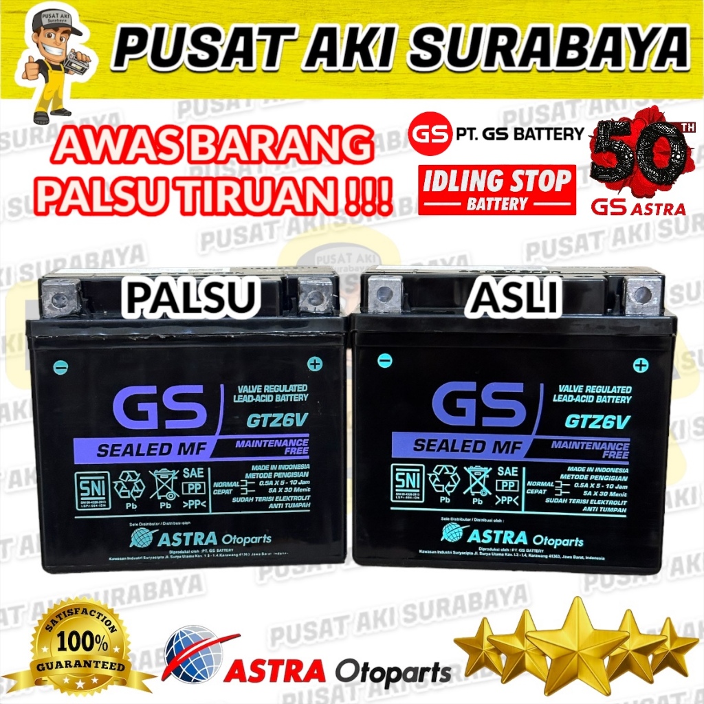 GARANSI RESMI GS ASTRA GTZ6V ORIGINAL ACCU KERING MF MOTOR NMAX 155 VARIO 125/150 SATRIA FU CBR CRF SCOOPY-FI MTZ6S