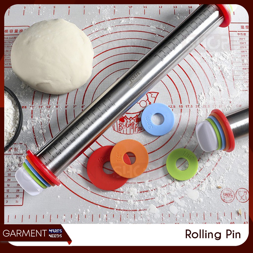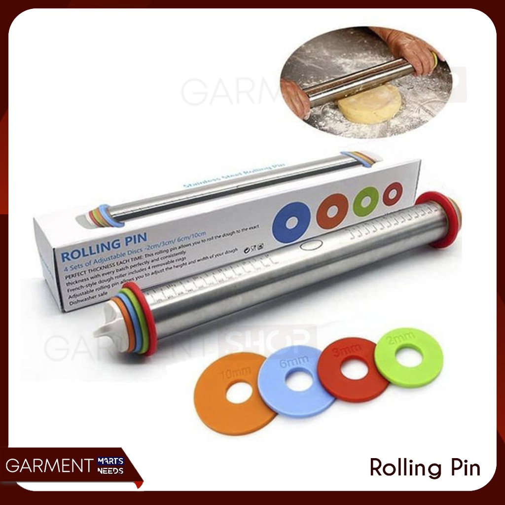 Rolling Pin Stainless Steel Adjustable Penggilas Adonan Kue Anti Lengket