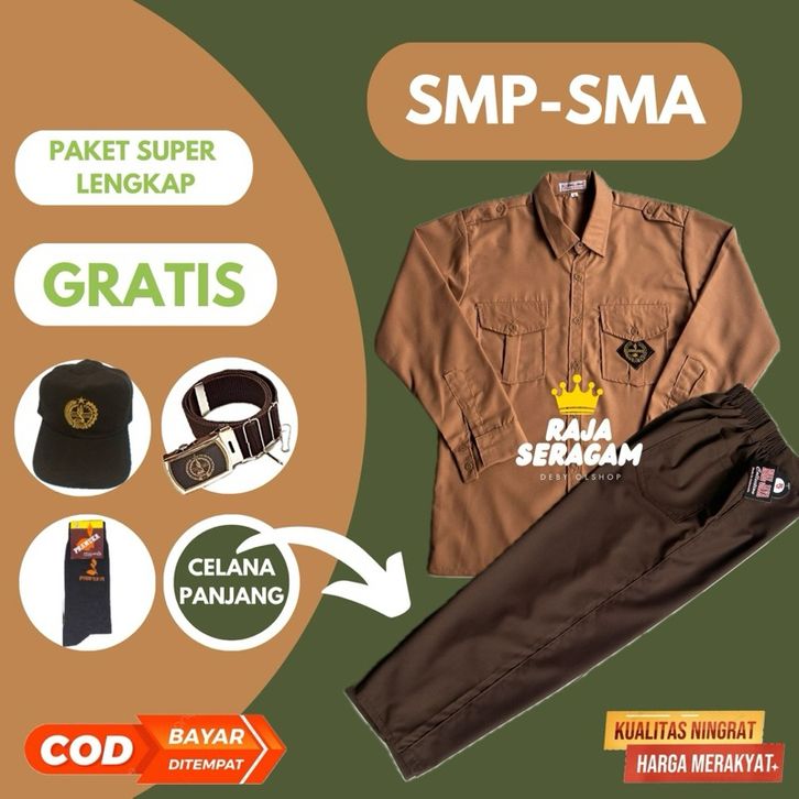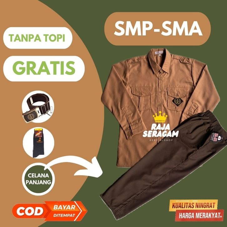 setelan seragam pramuka smp laki laki seSTELAN SUPER LENGKAP PRAMUKA LAKI SMP/SMA BAJU PANJANG CELANA PANJANG KELAS 1-3