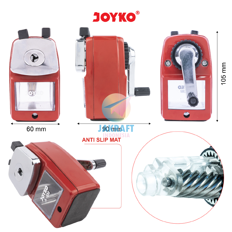(1 Unit) Serutan Rautan Pensil Meja Besi JOYKO A-5M Stainless Table Pencil Sharpener Lengkap Dengan Tray & Holder