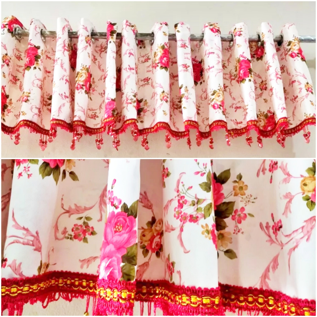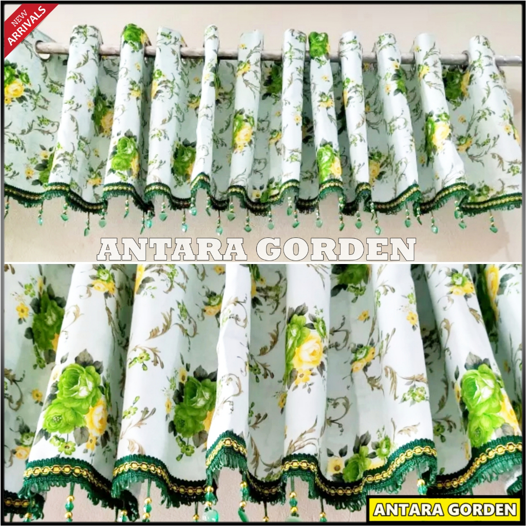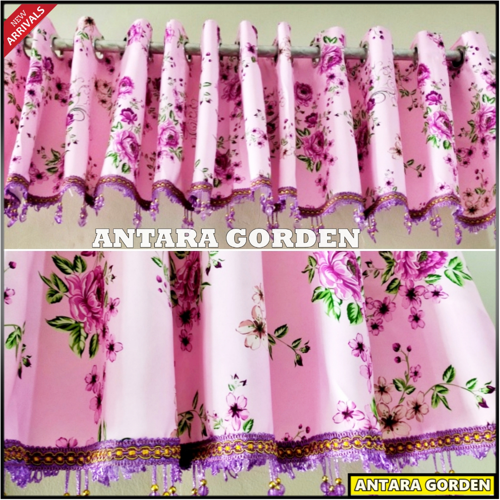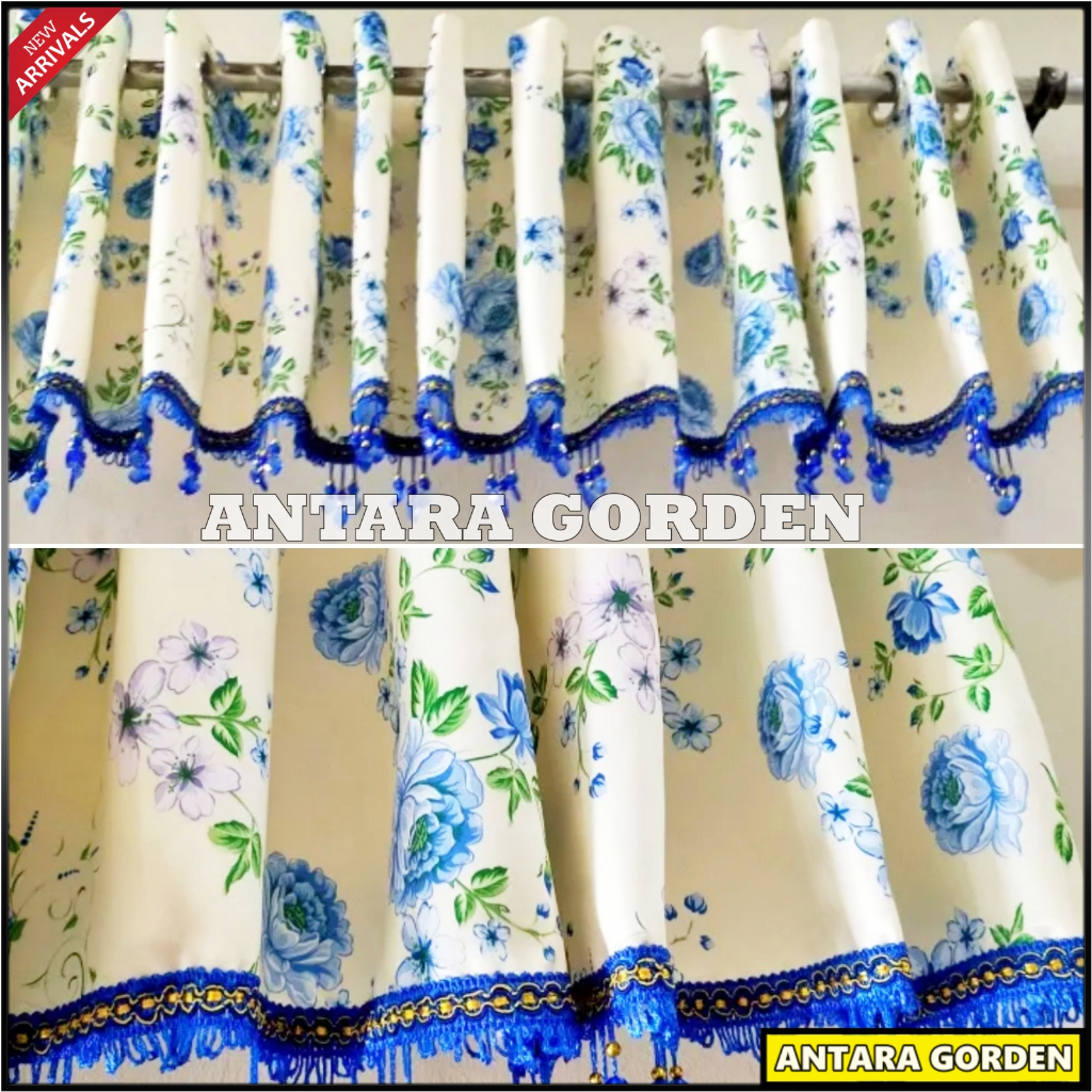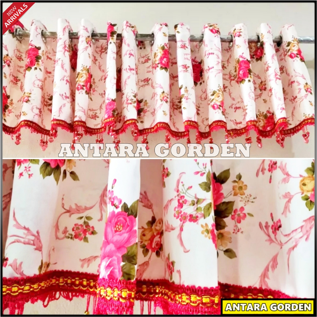 Gorden Poni Pintu Tengah Ruang Tamu Bahan Blackout Import Motif Bunga Shabby Lebar 270 x Tinggi 45