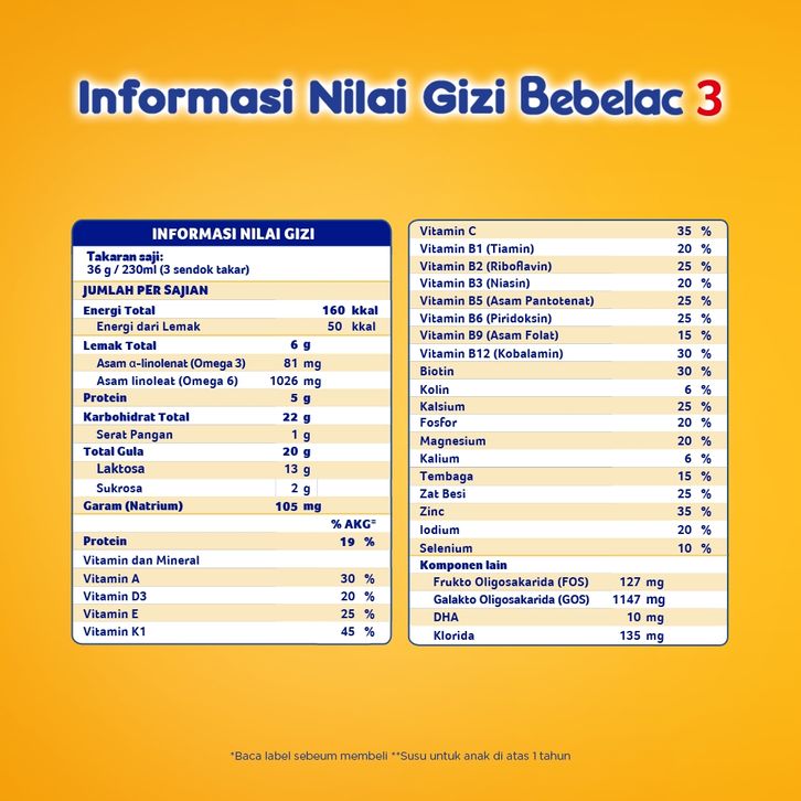 Bebelac 3 Madu /Vanila Susu Pertumbuhan Bubuk 1800 Gr