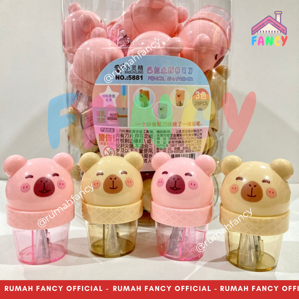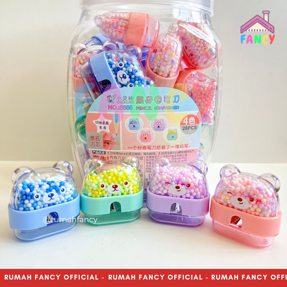 [GROSIR] 1 TOPLES Serutan Rautan Pensil Fancy Import Unik & Lucu Transparant PREMIUM Bentuk Kelinci / Bear / Kucing Pink