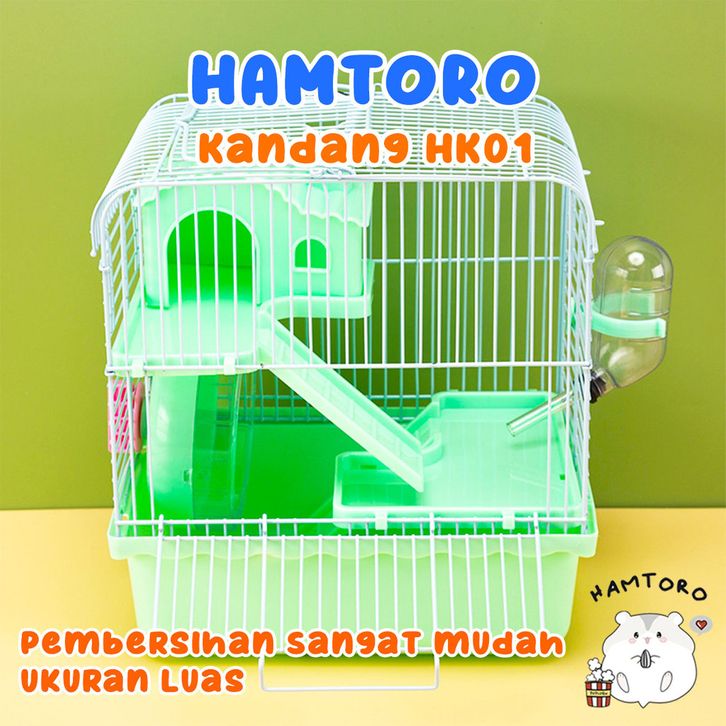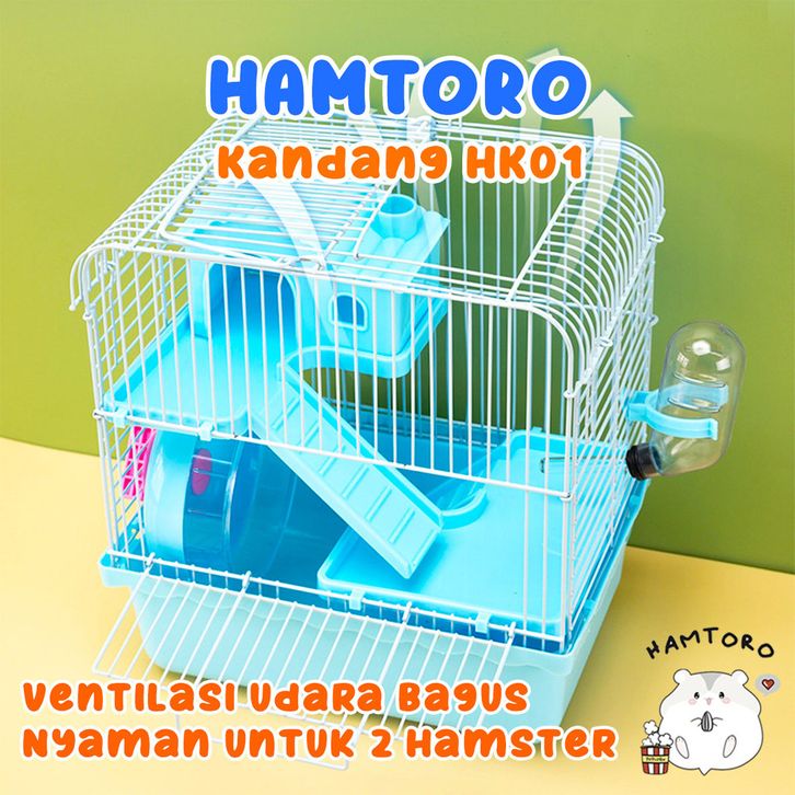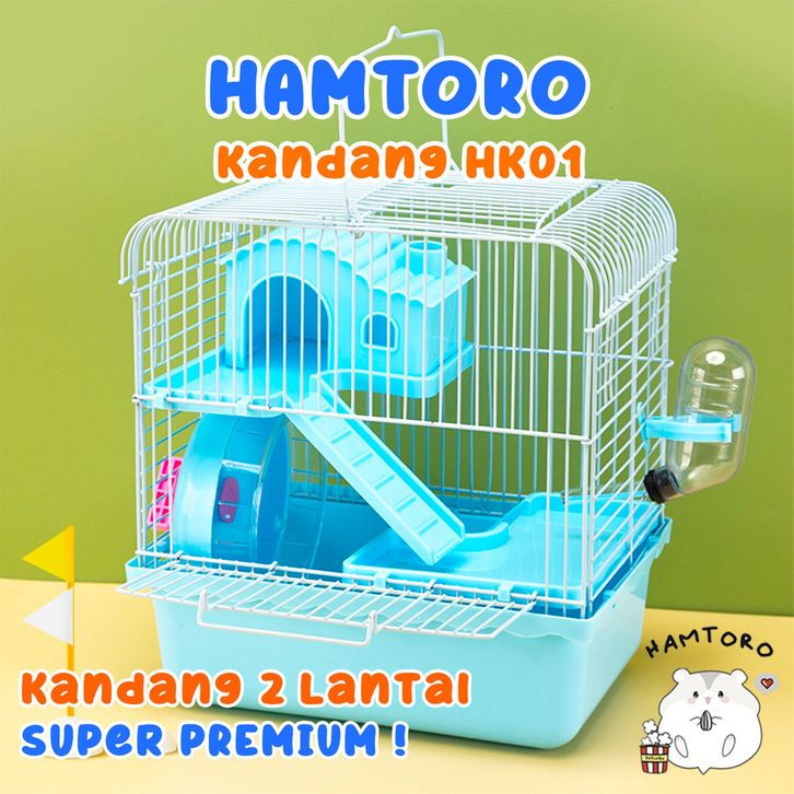 Kandang Hamster Fullset 2 Lantai Ukuran Besar PREMIUM | Free Kincir & Botol | Ventilasi Baik, Anti Pengap, Nyaman