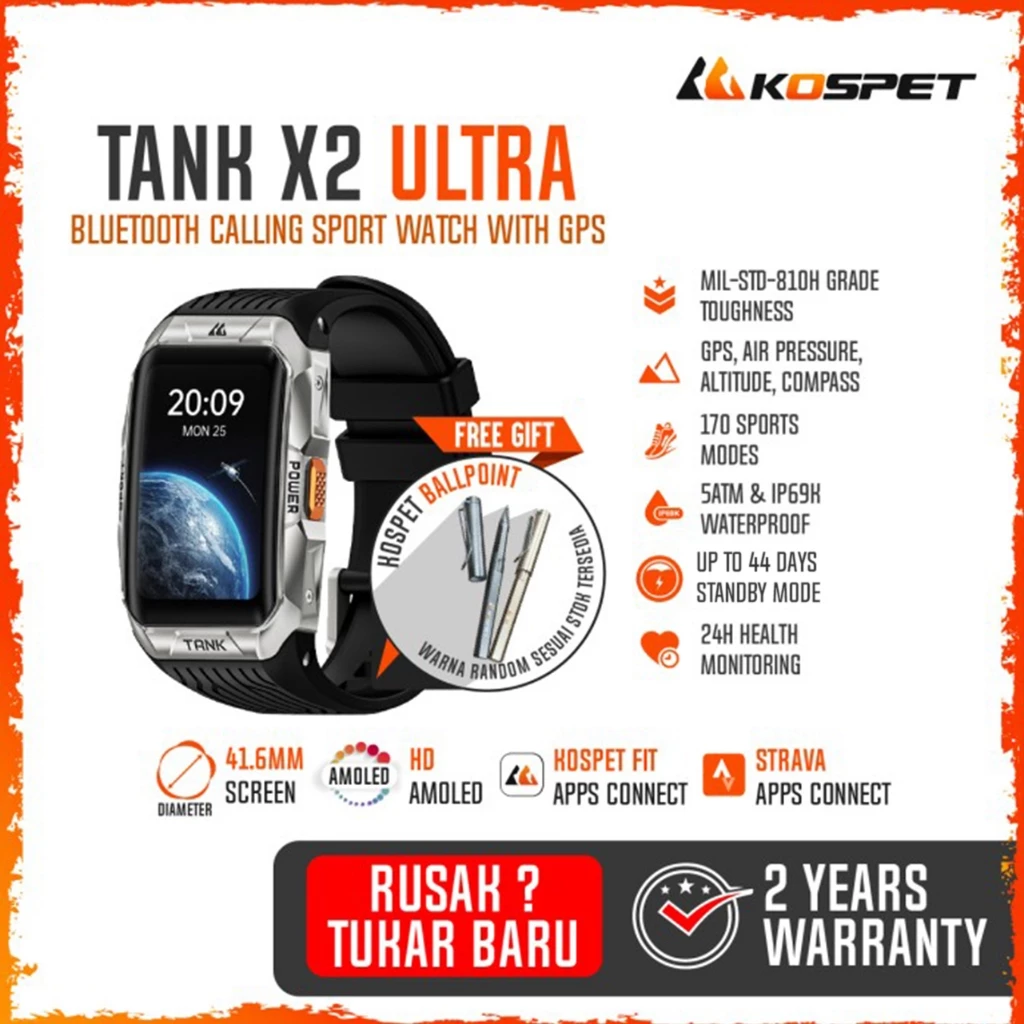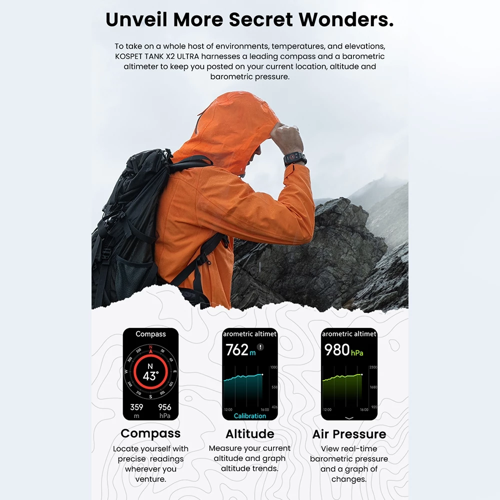 Kospet Tank X2 Ultra Bluetooth Calling Rugged Smartband GPS 1.64" Amoled Fitness Tracker 5ATM 170+ Sports Modes