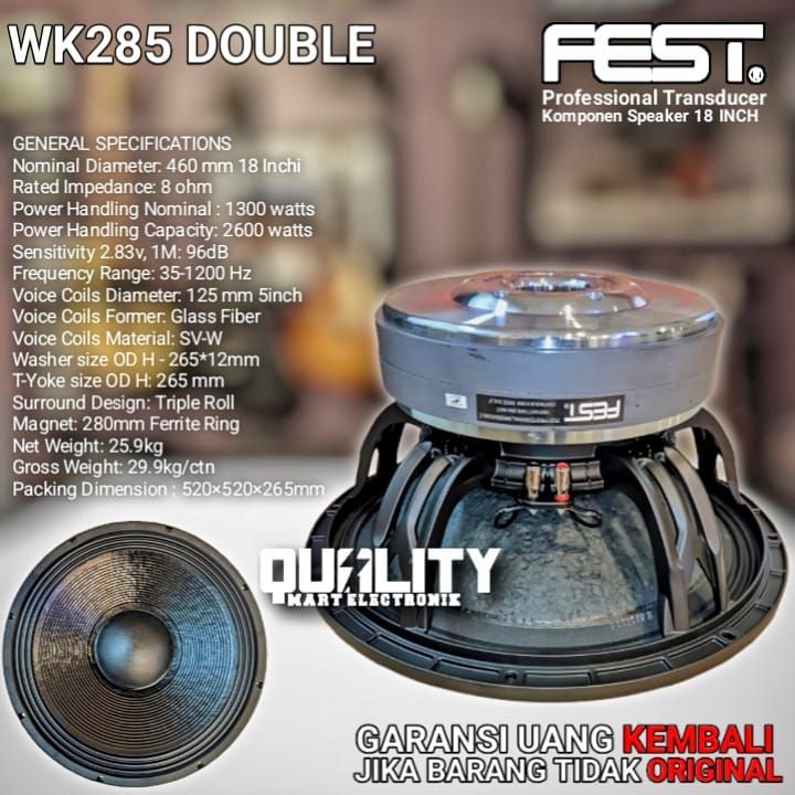 Speaker Komponen Fest WK285 Double Original Transducer 18 inch Double Magnet VC 5 inch