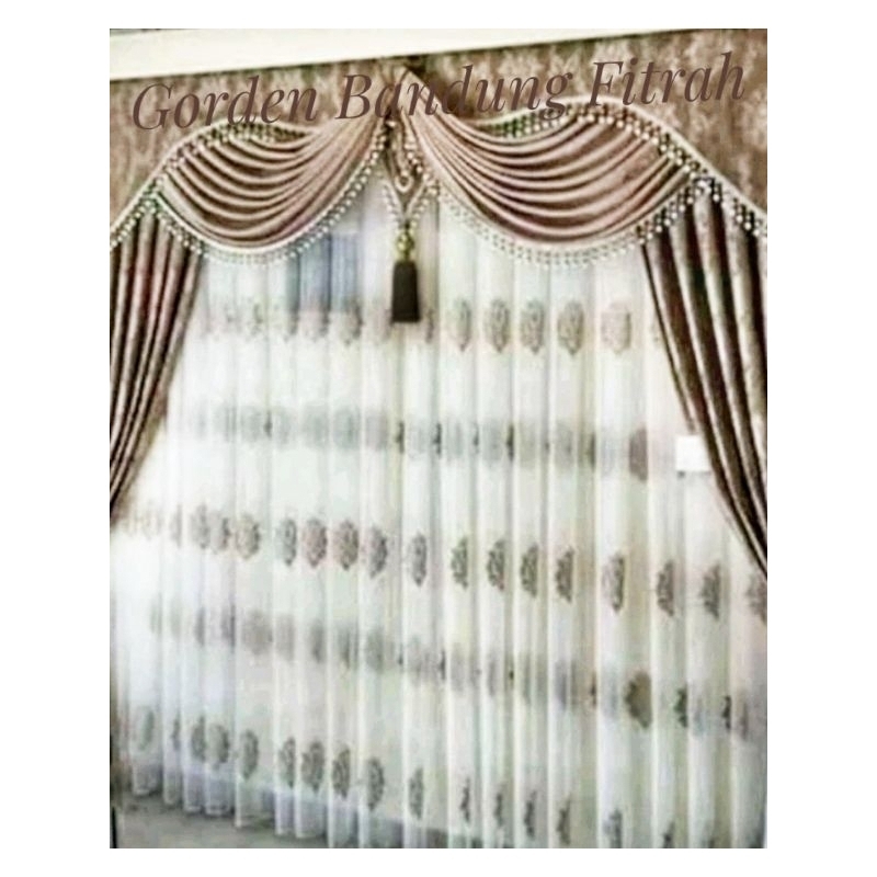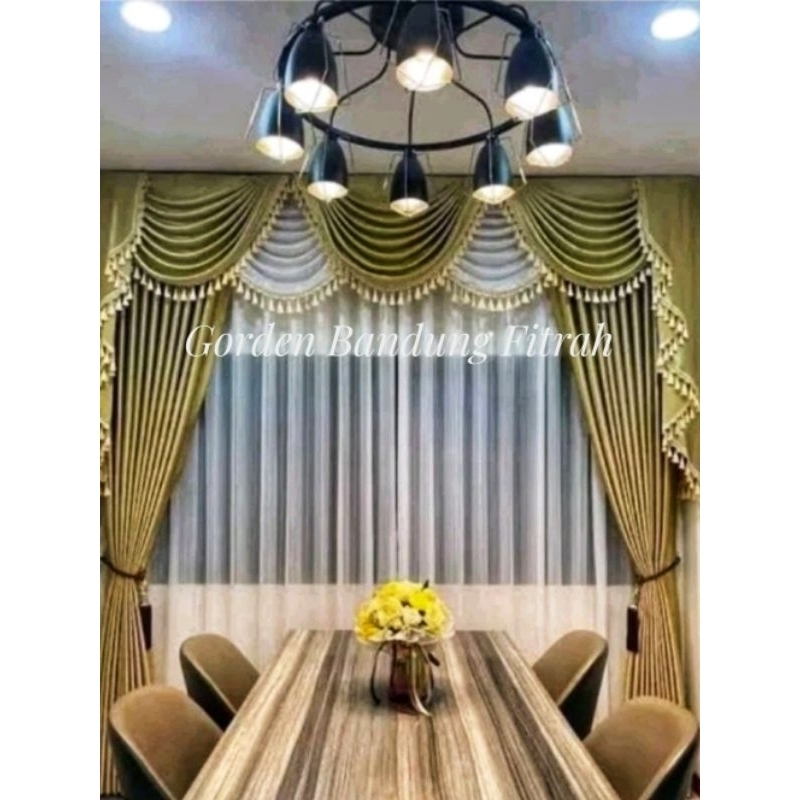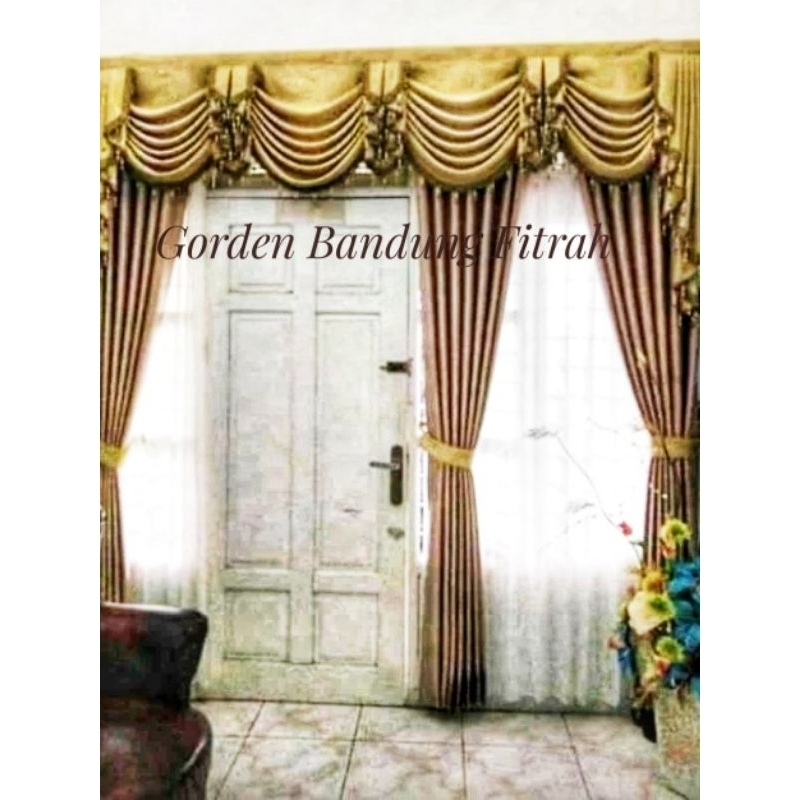 Gorden mewah satu set + acessories untuk ruang tamu, jendela , pintu model poni gelombang terbaru