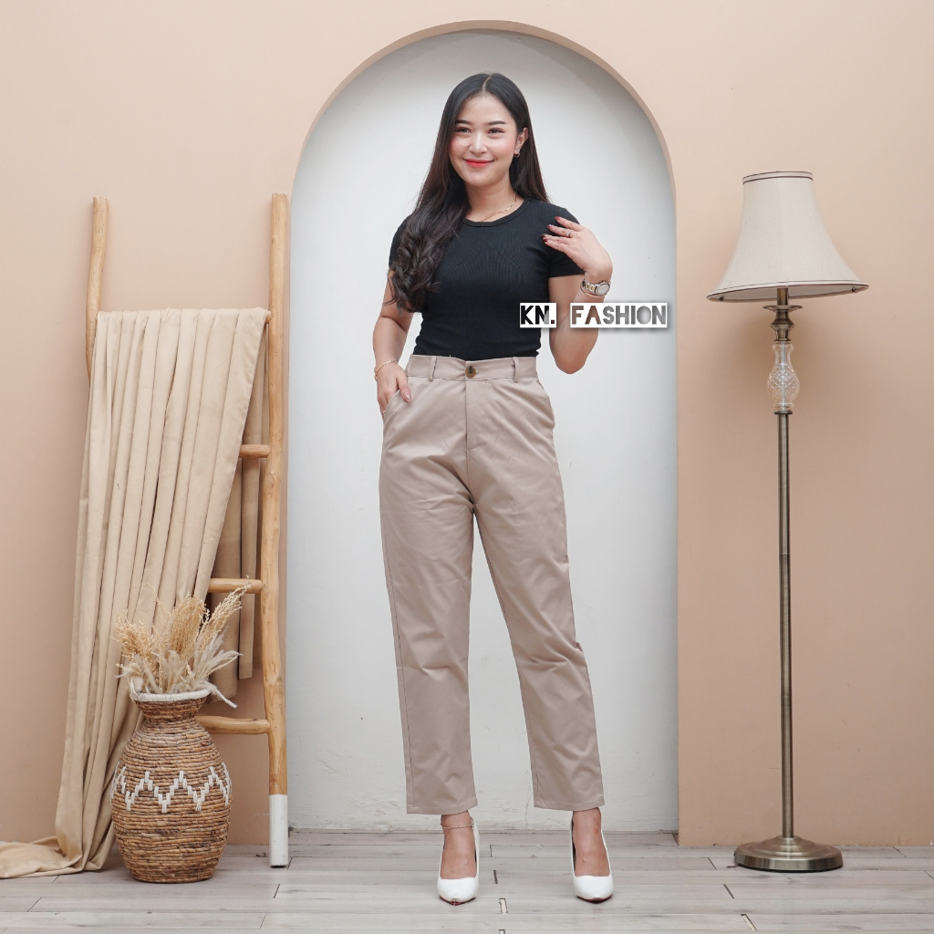 (Gratis Ongkir) Celana Basic Resleting Wanita Karet Casual Formal Kantor Bahan Katun Jumbo
