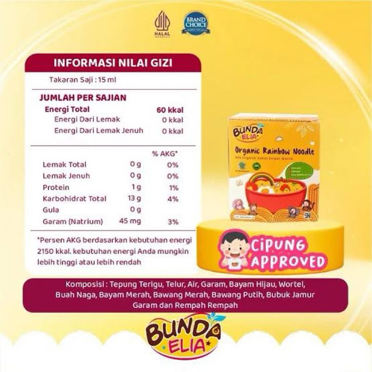 Bumbu Bunda Organic Rainbow Noodle Mie Organik Sehat Empat Warna Mie Sayur MPASI / MUJENI