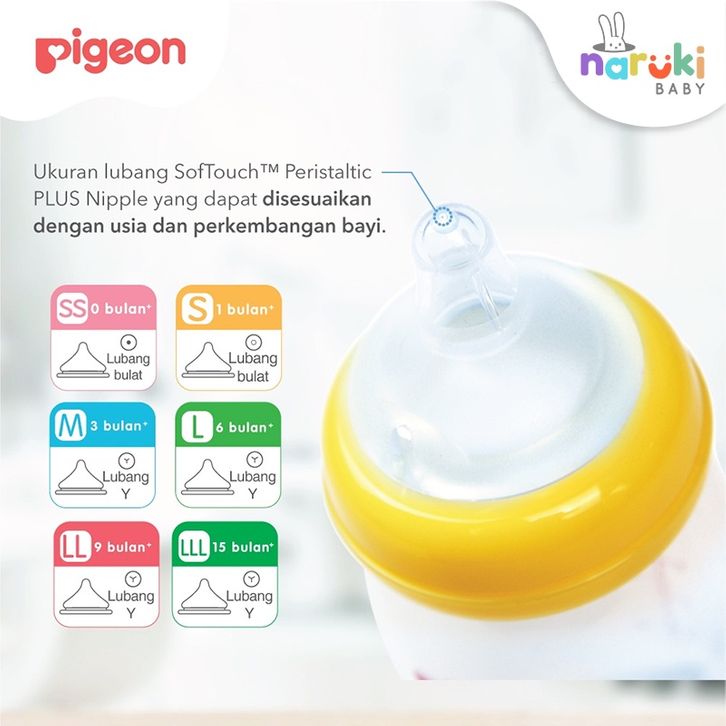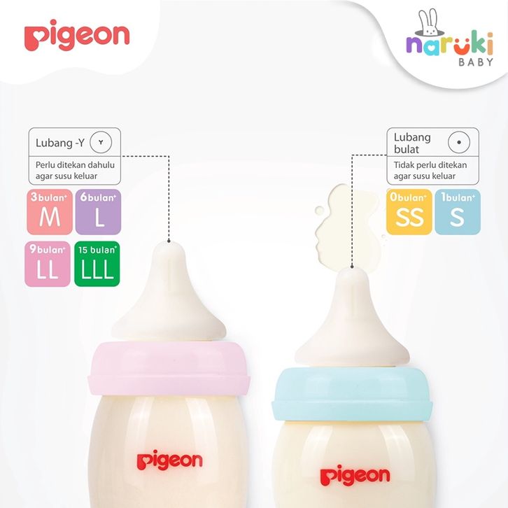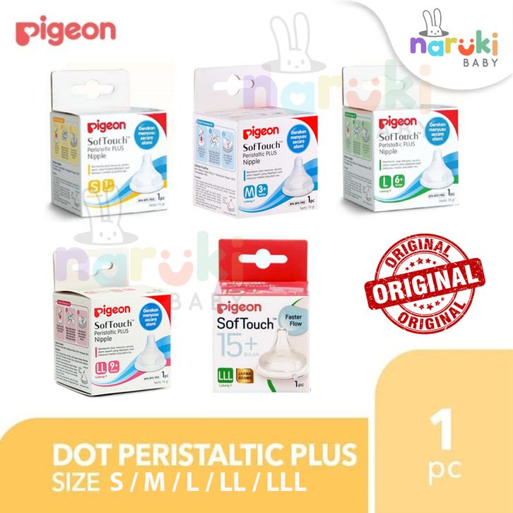 Pigeon Dot Nipple Peristaltic Plus Wide Neck Size S M L LL LLL / MUJENI