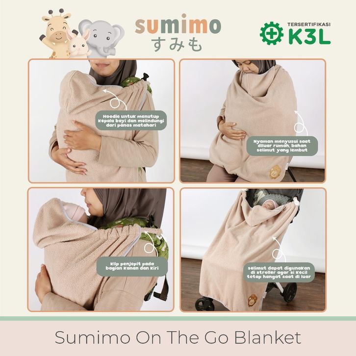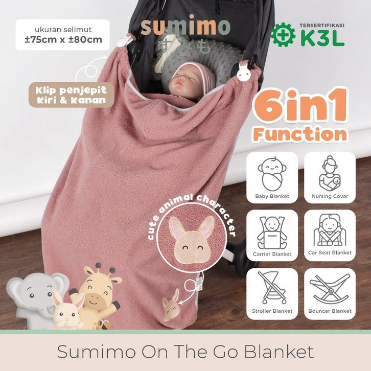 Sumimo On The Go Blanket Selimut Topi Bayi Clip On 6 in 1 Function / MUJENI