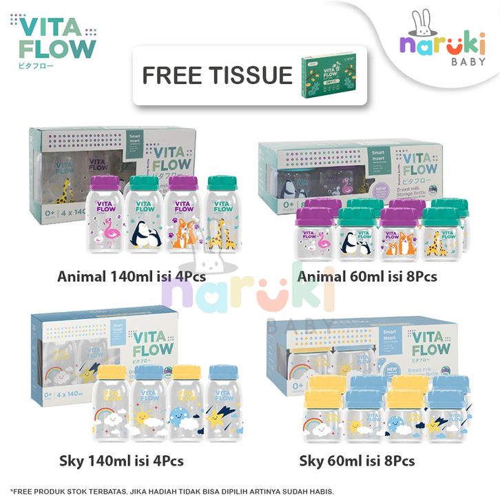 Vitaflow Botol ASI 3in1 PP 140ml isi 4pcs dan 60ml isi 8pcs Botol ASI Vita Flow / MUJENI