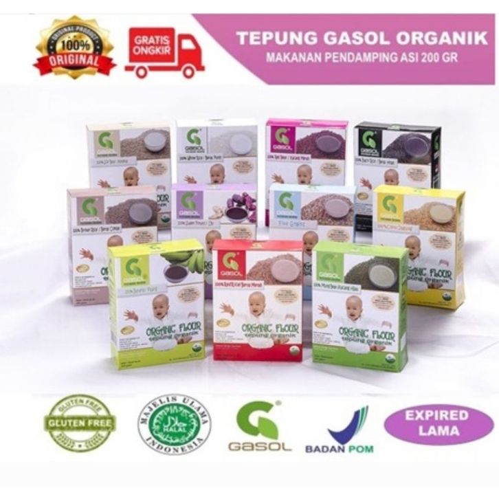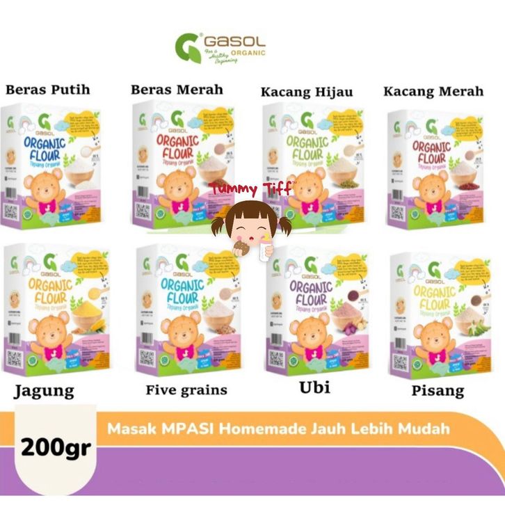 Tepung Gasol Organik Makanan Bubur Bayi Organik Pendamping ASI MPASI Gasol Tepung Beras merah beras putih 200gr penambah