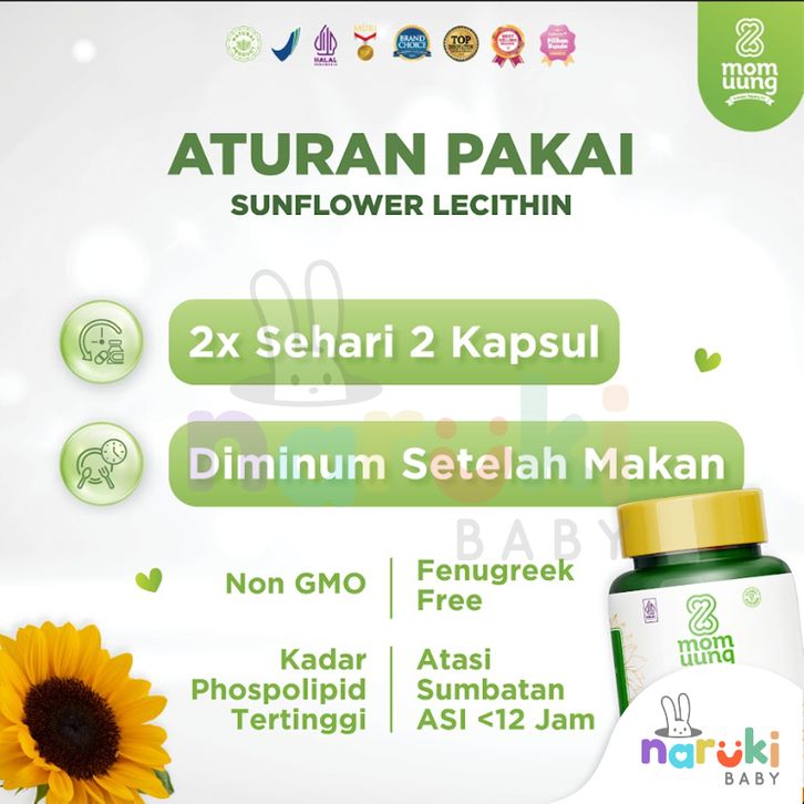 Mom Uung Sunflower Lecithin 30 Kapsul Melancarkan Sumbatan ASI Non GMO BPOM Halal / MUJENI