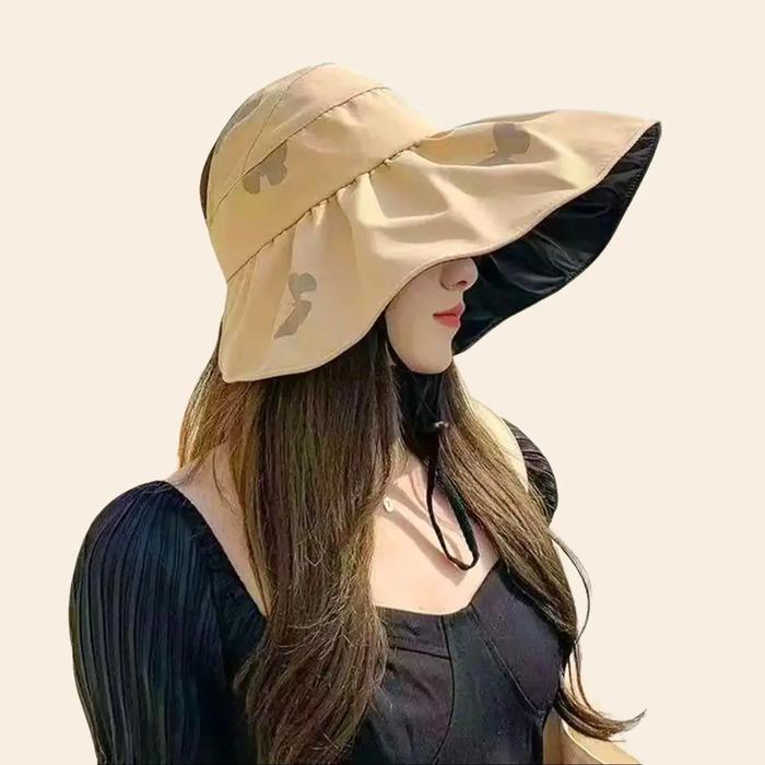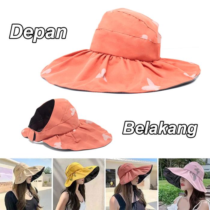 ORION.ID Topi Visor Pantai Wanita Butterfly A-20 Korean Style Outdoor Fashionable Kulit Merah