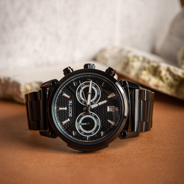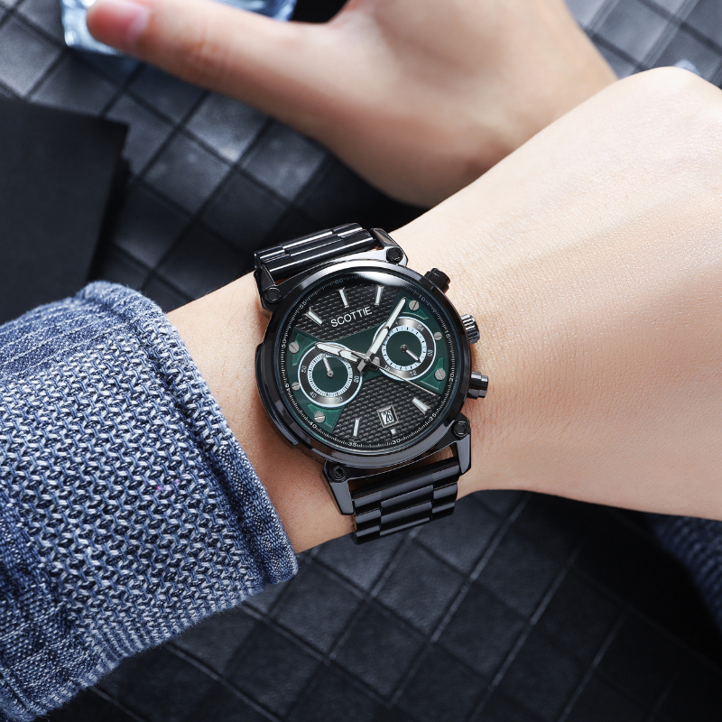 SCOTTIE HENRY JAM TANGAN PRIA CHRONOGRAPH TAHAN AIR STEEL STRAP STYLISH KEKINIAN
