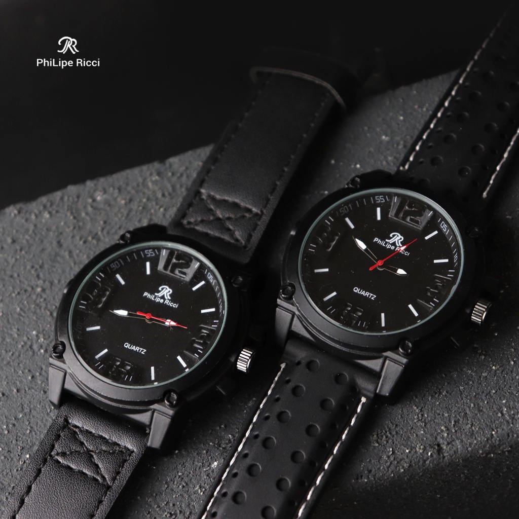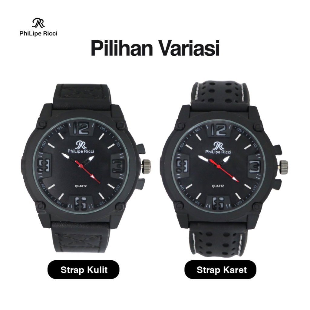 PHILIPE RICCI JAM TANGAN PRIA ANALOG KULIT & KARET QUARTZ TERBARU KLDRP FREE BOX