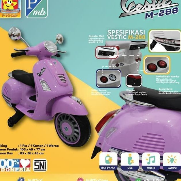 Mainan Motor Aki M-288 Vespa Pmb M338 M 338 Amore M788 M 788 Nw 113 Nw113 Murah Bergaransi