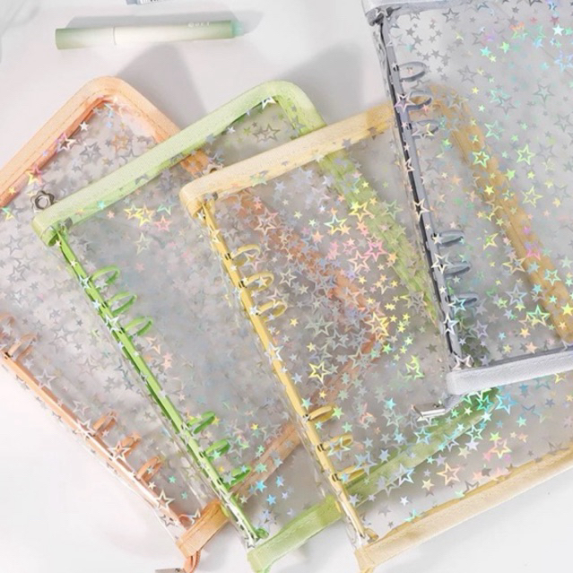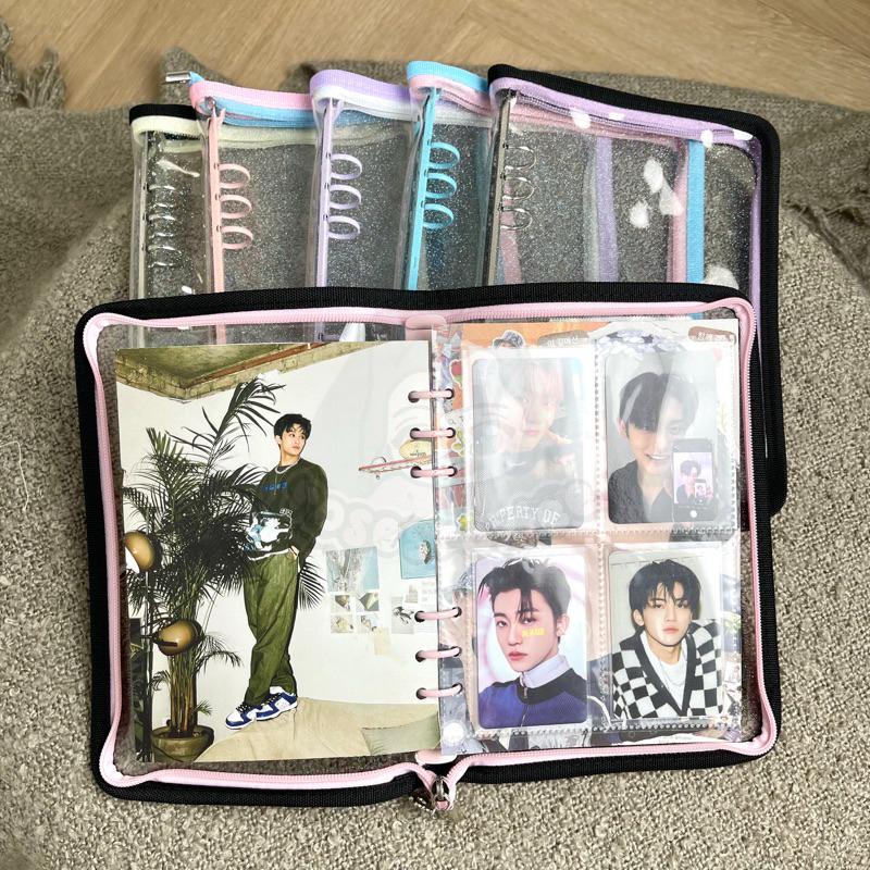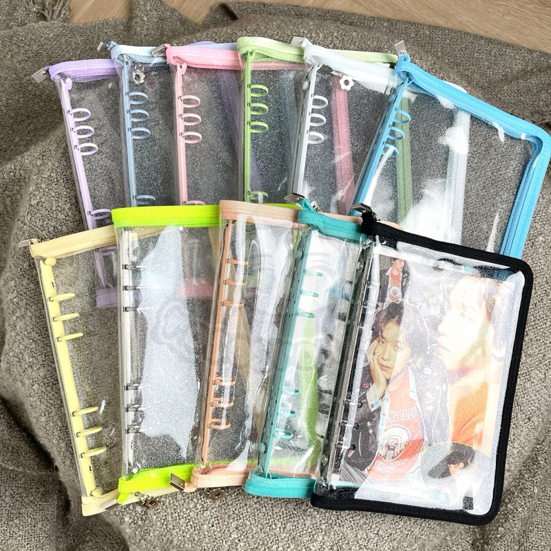 BINDER A5 ZIPPER WARNA GLITTER TRANSPARANT PHOTOCARD PC