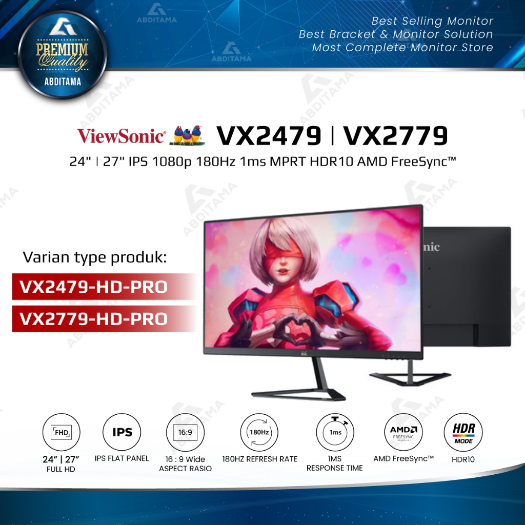 Monitor Gaming LED Viewsonic VX2479-HD-Pro 24" | VX2779-HD-Pro 27" IPS 1080p HDMI DP 180Hz 1ms MPRT HDR10 Variable Refresh Rate
