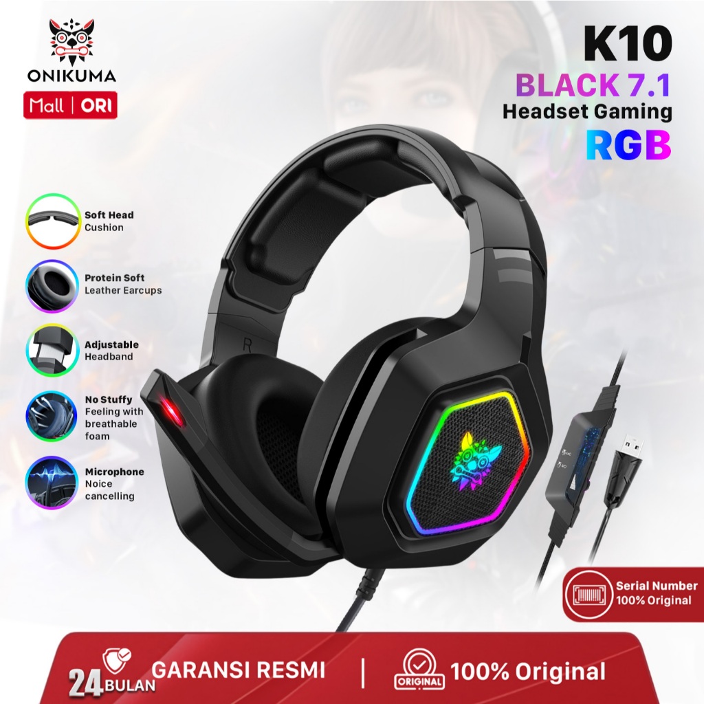 Headset Gaming Mic Full Bass Rgb Light Black For PC Laptop dan HP Headphone Gaming