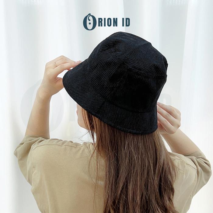 ORION.ID Topi Bucket Corduroy Trendy Wanita A-3 Korean Style Outdoor Fashionable Merah Kulit
